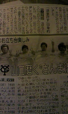 ということで、今日は日刊スポーツに載っていたので貼ります。