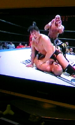 諏訪魔って、リングネームから言って、イロモノのイメージ(^^;)があったが、試合を見たのは初めて。・・・「ジャンボ鶴田の後継者」みたいに言われてるだけあって、スープレックスの切れなんかすごいなと思った。あと体格もすごいし。・・・すいません、初めて見るのでこんな感想で。