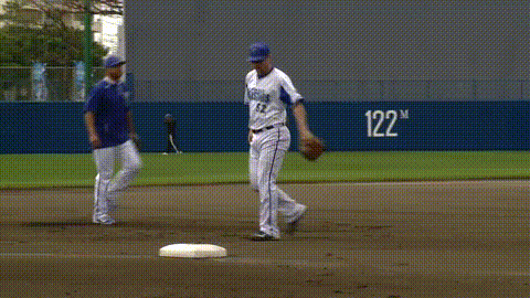 ・・・・新外人のロマックと一緒に 三塁でノック 。・・・えらい楽しそうで、そして