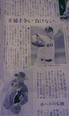 新聞を楽しみにしてたのに、報知はちっちゃい記事な上に、あまり好きでない解説者の、球の切れが悪いの重信に打たれたのと(2月のFB初登板にどんだけ注文つけるんだい(-"-;))嫌なことばかり書いた余計なコラム付き(=_=)。