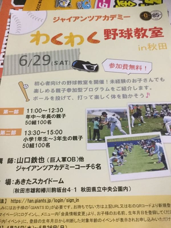 この「あきたスカイドーム」というのは、参加者しか入れないんだろうか??2階からでも一般の見学とかできないのかな??行ってみて、会えたらラッキー、会えなくても試合だけ見て帰ろうか。・・・とか、いろいろ考えてみる。ちなみに、30日は野球教室は盛岡でやる模様。