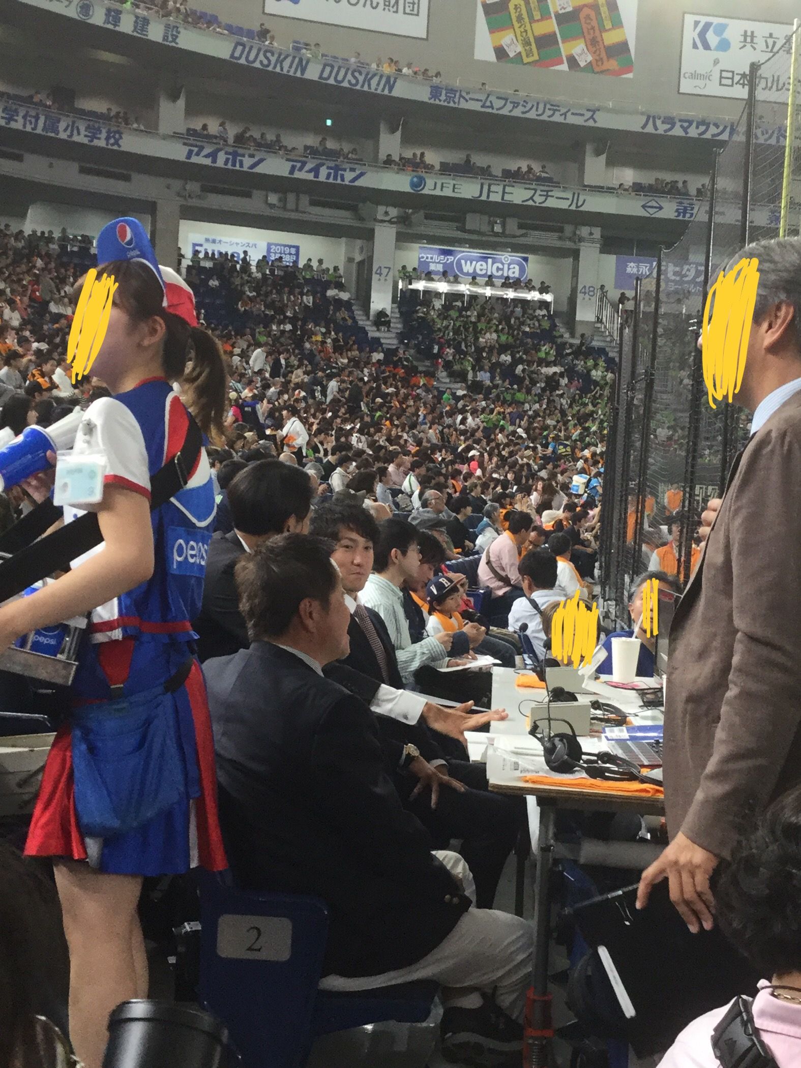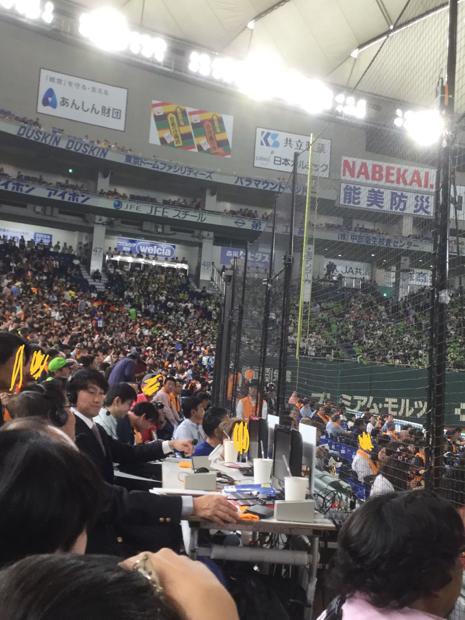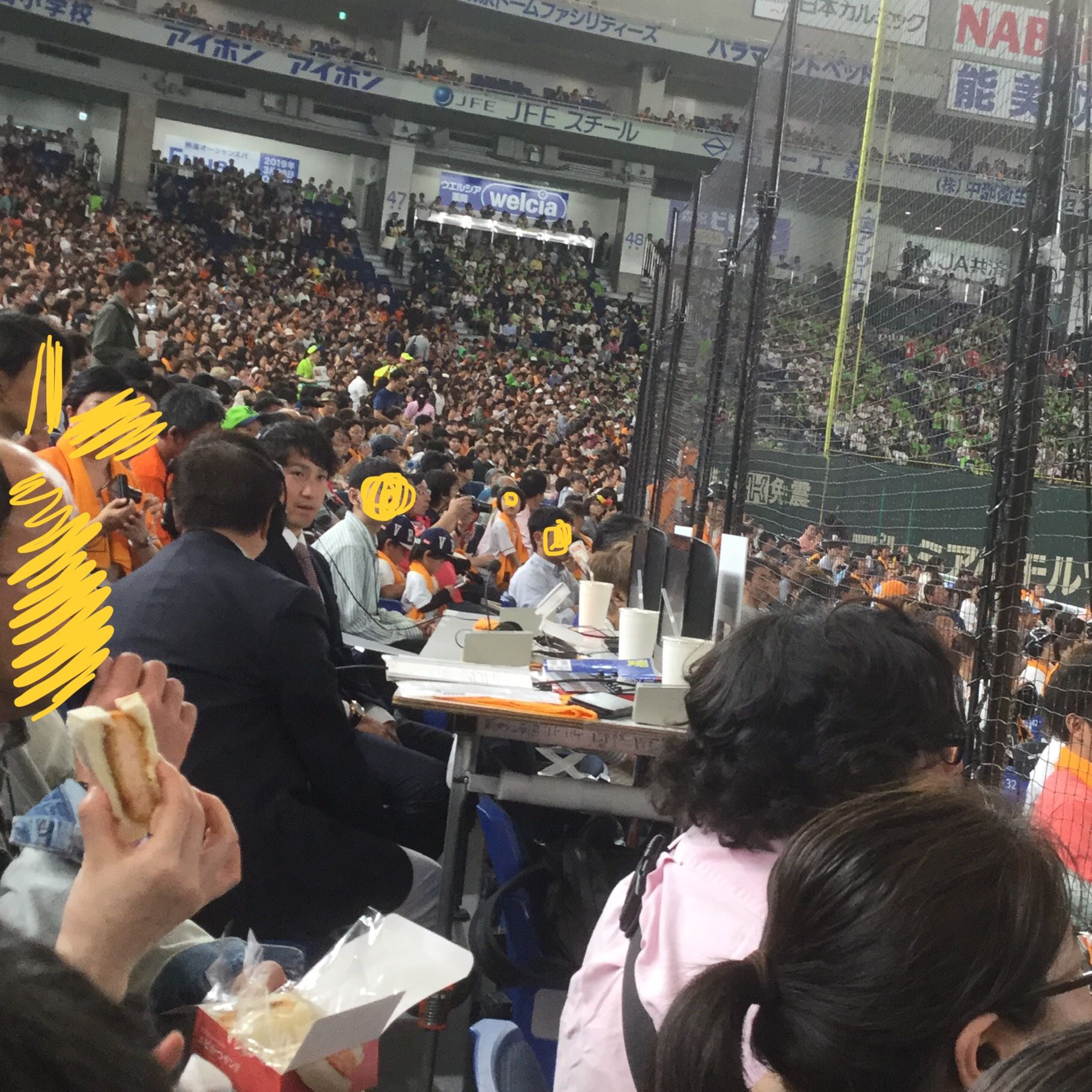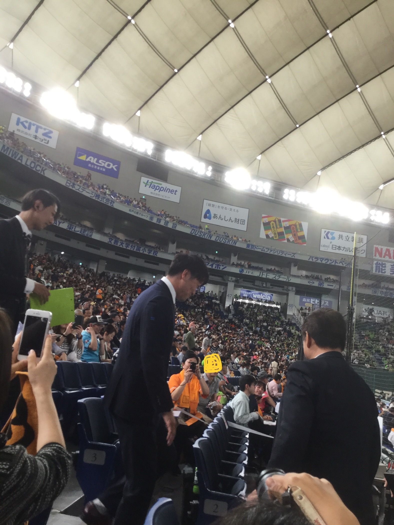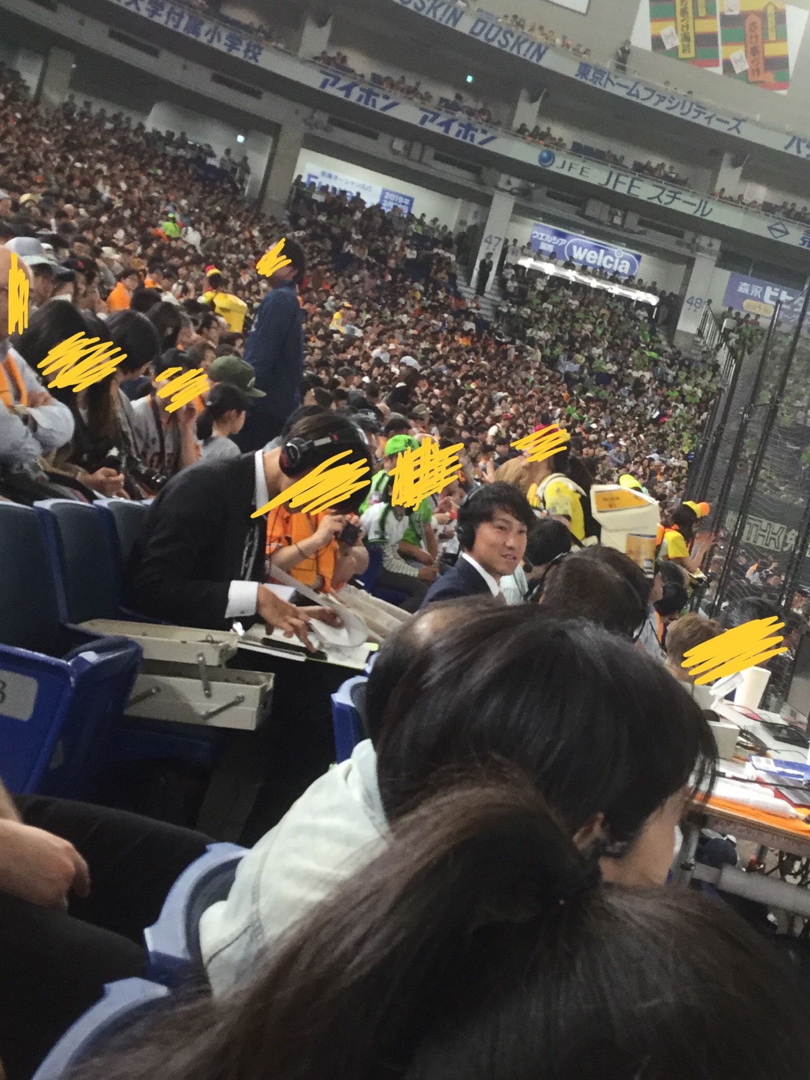 ちなみに、私の席は放送席の5席真横だったため、「ぐっさんはどっちに座るんだろう、近いほうだといいな・・・」と思っていたら、近いほうにアナウンサーのおじさんが座った。川崎さんが真ん中、ぐっさんは一番向こう