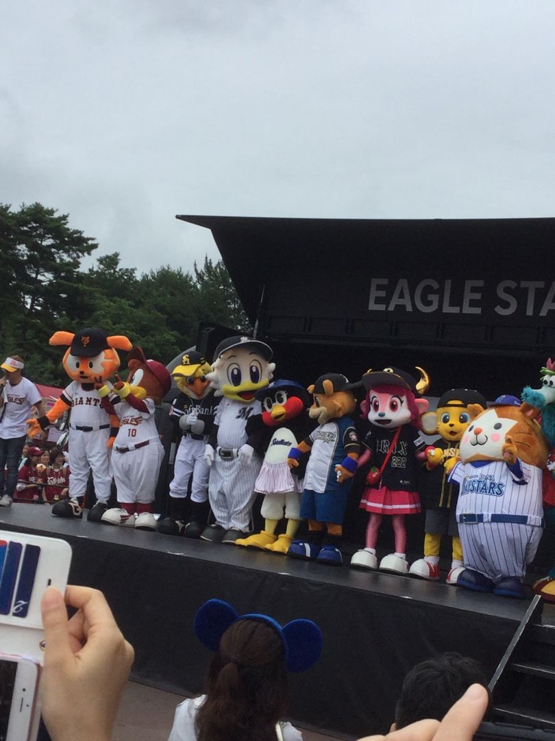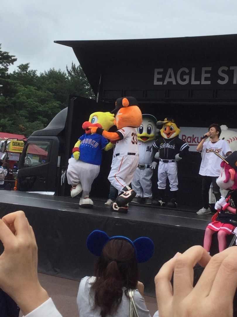 片足相撲や椅子取りゲームをしたが、もう「自由人」ばっかりだからステージ上はカオスに大笑い大笑いステージ上の死角にずっと座って休んでいたドアラ(だから写真にいない笑)大笑い
