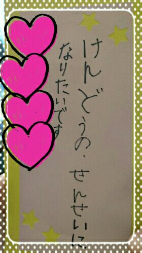 中学校の青春を ほぼすべて 剣道に捧げた たろちゃん 小学校4年の終わりから始めた剣道が たろちゃんに与えた影響は計り知れない そんなたろちゃんの夢は 大好きな剣道の先生のような 《剣道の先生になること》 そんなたろ姉のように 剣道から何かを学んでもらえればと思い 次女のじろちゃんも今年度から参加 そんなじろちゃんの短冊が、放課後児童クラブに飾られてたんだけど 似てない姉妹なのに、こゆとこソックリなのねぇ。。。