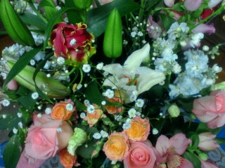 昨日1月9日で アルバイトを辞めた娘先輩の卒業制作のお手伝い と 自分の就活 のため 休みが増え バイト先にも迷惑をかけてはいけない と 約3年間続けたアルバイトを辞めることにしたんです 3年もいたせいか 従業員の皆さんにもお客様にもかわいがっていただき 本当に幸せな娘です こんなに素敵な花束を抱えて帰ってきましたこのほかにも 常務をしている奥様から お花のパッチワークの額縁 お酒部門の皆様からギフト券 などを戴き お店を出るときには 社長と専務も来てくれて「就職が決まらなかったら ウチにきなさい 面接はパスだよ」と笑って言ってくれたと アルバイトを始めたときには こんな無愛想で気働きのできない娘で 大丈夫かしら?と思ったものです過保護に育ててしまった・・と反省しましたよ娘なりに 勉強し 努力したんでしょうねこうして 皆さんにかわいがってもらっている姿をみると 安心します これから また一歩前進して 自分の人生の設計図 描いてほしいです