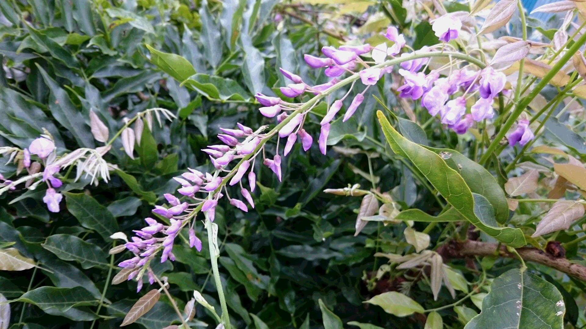 台風のあとは暑い日が戻ってきましたね今朝 気がついたのですが我が家の庭の片隅にある藤に花が咲いていましたえーー!と思って車から降りて パチリそういえば 毎年2回咲いているかも・・・藤の別名 フタキグサ(二季草)は 春から夏に咲くから二つの季節をまたぐ花 という意味らしいので2回咲く というわけではなさそうですねなので一年に2回 花が咲いたのでラッキーということで狂い咲きと 片付けてしまうのは花に申し訳ないですものね