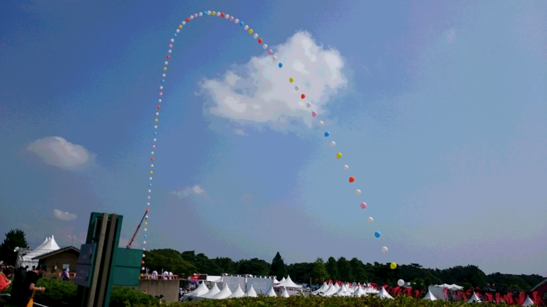 晴れ渡った空今年もやってきました ROCK IN JAPAN FESTIVAL 2016今年は初日の6日に行ってきました娘ダーリンも初参戦3人で楽しんできましたよ前日の夜に我が家に来て当日は 6時半出発ねと言っていたのに 7時出発高速道路も渋滞で予定より大幅に遅れて到着そして 今年の指定された駐車場はちょっと遠くて(^^ゞ荷物を載せたカートを引いて歩くこと約1キロ・・・・・でも ホラこの空をこの風船を観たらもう 元気回復ですよテントを立てて今年は2つさぁ~~~ 開幕グラスステージまで歩いて10-FEET↓BABYMETAL飛んで手を挙げて・・と 疲れたのでブランチ冷たいおうどんをmiwaを聴いたあとは予約していたTシャツを受け取りテントで休憩タイム海風が心地よくウトウト・・・BGMはスキマスイッチ贅沢よねテントをたたんで荷物をまとめて娘たちは UVERworldわたしは HAN-KUN合流して みんなで写真♪ごめんね~なんか 容量が大きすぎて?ここに 載せられませんでした最後は いつものローズポークの串焼きみかんのかき氷と牛タンつくねにぶたたんぽ(笑)明日も来たかったね~来年 来れるかな?なんて話をしながら帰宅したあと翌日日曜日もお仕事という娘夫婦を駅まで送って・・・でもね このフェスから帰る人で常磐線は大混雑らしく・・・TXで帰ることになりつくば駅まで送ることにふたりがマンションに着いたのは日付が変わってからでした(^^ゞなんにしても楽しい時間を過ごしてきました