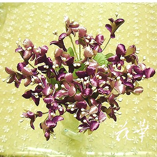 昨日の午後からは、N陽子さんのインテリアフラワーアレンジメントのレッスンでした。テーブルアレンジメントの制作をしましたが、妻であり、母親であり、そしてお仕事もしている彼女は、帰りの時間が決まっています。今日のレッスンはタイムアウト、来週続きのレッスンをすることになりました。時間の合間をみつけては、商品の制作をするのですが、おリボンで作るスミレの花、ようやくお花の形になりました。といっても、まだ葉っぱも足りないし、アレンジしていないので、ただ出来上がったスミレの花をガラスの花器に投げ入れてあるだけ。これだけでも、とっても素敵~。お花のサイズは約3x1.5cmほど。全部で48本くらいあります。微妙な色のグラデーションは、おリボンのどの部分を使うかによって違いがでます。おリボンもベルベットの起毛タイプで光沢のあるものを使っているので、小さなスミレの花でも、存在感がありますね~。さて、どんなアレンジメントになるでしょうね^0~*。アトリエ花華のコサージュ・ヘッドコサージュ(髪飾り)販売中!成人式、卒業式、入学式など各種パーティーにもご利用いただけます。画像をクリックすると沢山のコサージュのページに飛びますよ!アトリエ花華のHPはこちらをクリックしてネ↑。アートフラワー(上質造花)&プリザーブドフラワーのことなら アトリエ花華で!