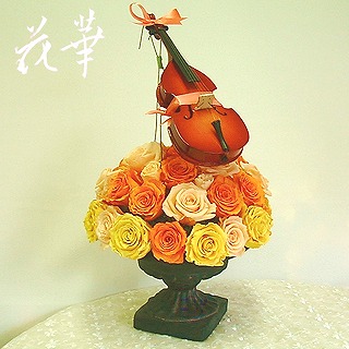知り合いの方の退職に何か記念になるものを…ずっとなにが良いか考えていました。母の日の忙しさもあり、ようやく出来上がったものがこちら。 ミニチュアのコントラバスとプリザーブドフラワーのアレンジメントジャズが好きな方で、ご自身コントラバスを演奏されるので、こうなりましたぁ。出来上がって数えてみたら、プリザーブド加工のバラはスタンダードローズとオールドローズ、大小合わせて40個以上ありました。お色は、その方のオリジナル名刺からヒントを得ました。沢山のプリザーブドローズの上にコントラバスを飾るのにやや苦戦^^;。コントラバスは、弦や支えの棒?のようなもの、ケースなどもセット。サテンのおリボンを解くとチャンとケースに収納できるようになっています。フ~シャンに出来るささやかなお祝いの気持ちです。アトリエ花華のコサージュ・ヘッドコサージュ(髪飾り)販売中!成人式、卒業式、入学式など各種パーティーにもご利用いただけます。画像をクリックすると沢山のコサージュのページに飛びますよ!アトリエ花華のHPはこちらをクリックしてネ↑。アートフラワー(上質造花)&プリザーブドフラワーのことなら アトリエ花華で!