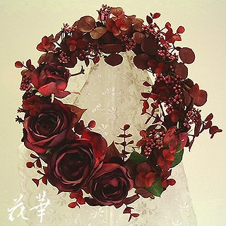 昨年から制作を始めたブルゴーニュの森・リースのパート3が先日出来上がりました。とても人気のリースでパート2としてリメイクしましたけど完売。今年のブルゴーニュの森・リースは、↓のデザインです。花びらに丸みのあるバーガンディー色のオールドローズ、それもとびっきり上質なもの。小さなお花は、アキレア、葉物はユーカリ。深みのある色合いは、タンニンの効いたヴィンテージ物のワイン色ともいえますね。そんなイメージで制作したリース。クリスマスの時期には、リースにベルを付けて楽しんだり、ベルをとれば、1年中飾れるコンセプトで制作デザインしてあります。ドライのリースにお花はアートフラワーを使用してあります。↑の画像をクリックするとアトリエ花華のリースのホームページに飛びます♪。アトリエ花華のコサージュ・ヘッドコサージュ(髪飾り)販売中!成人式、卒業式、入学式など各種パーティーにもご利用いただけます。画像をクリックすると沢山のコサージュのページに飛びますよ!アトリエ花華のHPはこちらをクリックしてネ↑。アートフラワー(上質造花)&プリザーブドフラワーのことなら アトリエ花華で!!