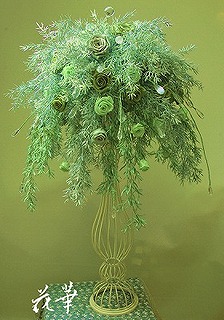 だいぶ前にインテリアフェアーで仕入れた大きな籐の篭。追加でもう一つ注文した大きな篭2つは、アトリエ内にそのままになっていました。フェアーで見かけ、一目ぼれ。アジア在住のヨーロッパ人の作家さんによるものらしく、籐で編んだ帆のようなデザインといい、流木のつっかえ棒といい、とにかく素敵。ようやく昨日その篭にアレンジしたのがこちら↓。アップに耐えうるしなやかで美しいアートフラワー。篭の個性的なデザイン、厳選した上質アートフラワーで風に舞う花々をイメージしてあります。グリーンを大目に使っているところも魅力的です。やや落ち着いた色目なので、飽きのこない見るたびに心引かれるデザイン。店舗のディスプレイ、お玄関、各種お祝い用ギフトにお勧め。一点もの。こちらの篭でオーダーメイドも承りま~す。↑の画像をクリックすると詳細のページに飛びますよん♪アトリエ花華のコサージュ・ヘッドコサージュ(髪飾り)販売中!成人式、卒業式、入学式など各種パーティーにもご利用いただけます。画像をクリックすると沢山のコサージュのページに飛びますよ!アトリエ花華のHPはこちらをクリックしてネ↑。アートフラワー(上質造花)&プリザーブドフラワーのことなら アトリエ花華で!!!