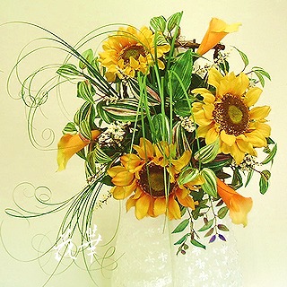 怒涛の母の日・フラワーギフトも終わり、ボッ~と漂っているフ~シャンですが、いつまでもそんなことをいっていられません。少しずつ、普通の生活に戻さないとですぅ。久しぶりの新作をホームページに掲載したのがこちら↓。ゴッホのヒマワリのような情熱的なヒマワリと黄色のカラーで作った新作のフラワーアレンジメント(インテリアフラワー)・壁掛けのご紹介です。アップにも十分に耐えうる美しいヒマワリ(アートフラワー・上質造花)。カーリングしたベアグラスで動きをつけ、白いベリーやグリーンなどが入ったシンプルだけどヒマワリの個性をたっぷり引き出したデザインです。各種ギフト、はたまた自分へのご褒美にいかがでしょうか。傍において置くだけで元気になりそうなヒマワリの壁掛けですよん♪アトリエ花華のコサージュ・ヘッドコサージュ(髪飾り)販売中!成人式、卒業式、入学式など各種パーティーにもご利用いただけます。画像をクリックすると沢山のコサージュのページに飛びますよ!アトリエ花華のHPはこちらをクリックしてネ↑。アートフラワー(上質造花)&プリザーブドフラワーのことなら アトリエ花華で!