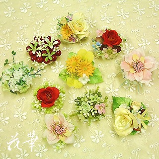 新しいPCの環境も整ったところで、今日は、遅れていた新作のコサージュの発表です。*デンファレとカスミソウのコサージュ*カントリーデイジーとフェザーのコサージュ*ライトレモンイエローのバラと忘れな草のコサージュ・パープル*ライトレモンイエローのバラと忘れな草のコサージュ・ブルークローゼットの中のいつものジャケット、スーツ、ワンピースも、コサージュひとつを付け替えるだけで、ずいぶん新鮮な感じになるものですよね。コサージュは便利はイメージチェンジのアイテムのひとつ。アトリエ花華では、卒業式や入学式、それに結婚式・各種パーティーにもご利用いただけるオリジナルデザインのコサージュをたくさんご用意してあります。是非HPを覗いてみてくださいませ。コサージュのページはヘッドコサージュ(髪飾り)なども含めて2ページにわたり、100点前後ございます。きっとお好みのコサージュが見つかると思います。アトリエ花華のコサージュ・ヘッドコサージュ(髪飾り)販売中!成人式、卒業式、入学式など各種パーティーにもご利用いただけます。 アートフラワー(上質造花)&プリザーブドフラワーのことなら アトリエ花華で!