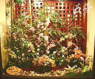 昨年末29日に行った第三回中野・わた庄・俺んち様のディスプレイ・店内装花・インテリアフラワーの模様をHPにアップいたしましたので、ブログでも御紹介しま~す。*まず、真正面からの撮影。*太目の竹を左奥に。* 右コーナー手前には、ムスカリ、スズラン そして、野いちご。* 竹やぶの前の小道には、ランの御所車が2台。もう一台は、右側奥に。* わた庄・俺んちさん店内のインテリアフラワー。* 入ってすぐの一番目に付く場所は、華やかに。外の通りからガラス張りになっていて、そちらからの撮影なので、フ~シャンの姿が映っていますねぇ~。ガラス越しの撮影なので、実物の良さを御紹介しきれないのが残念です。今回のテーマは”雅”でした。フ~シャンの好きな竹を大中小使い分け、左手前から右奥にかけて小道が通り抜けているデザインで遠近感を出してあります。小道には、ランをアレンジした御所車を2台配し、お花は、さくら、オンシジウム、コデマリ、ムスカリ、野いちご、スズランなど。パッと見にはさほど目立たないのですが、花材を支えているベースには、ドライの山苔を貼り付けてあります。6時間の所要時間のうち半分をこの山苔のベース作りに費やすという、あまり見えないところに手の込んだディスプレイとなりました。その分、見ていて飽きないデザインのはず。お近くの方で、中野へ行った際は、是非実物をご覧になってみてくださいね。夜、ライトアップされたときがお勧めですよん。そして、来年のディスプレイのご依頼も承りました。アトリエ花華のコサージュ・ヘッドコサージュ(髪飾り)販売中!成人式、卒業式、入学式など各種パーティーにもご利用いただけます。アートフラワー(上質造花)&プリザーブドフラワーのことなら アトリエ花華で!