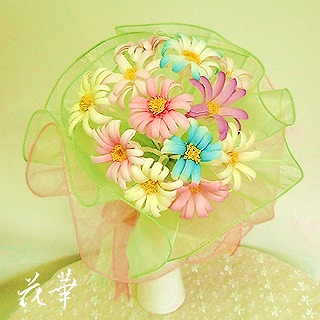 久しぶりにウエディングブーケ&ブートニアの新作をホームページに掲載いたしましたぁ。なんと、今回のウエディングブーケは…花びら一枚、雌しべ雄しべ、全ておリボンから裁ち、はさみでカットし、コテをあてて丸みを出す、お花一つ一つハンドメイドのウエディングブーケ&ブートニアです。お花はガーベラ。花びらの色のグラデーションも素敵でしょ~。おリボンのどの部分を使うかによって、色合い&風合の変化を楽しむことが出来るんです。お花の周りには、2色のオーガンジーで華やかさを演出。↑の画像をクリックすると、沢山のウエディングブーケのページに飛びますょ。全てがハンドメイドだから、一つとして同じものが無いんです。世界で唯一つのお花だから、晴れの日のウエディングブーケにピッタリです!挙式の後は、お手持ちの花瓶に記念のウエディングブーケとして飾っていただけますよん♪アトリエ花華のコサージュ・ヘッドコサージュ(髪飾り)販売中!成人式、卒業式、入学式など各種パーティーにもご利用いただけます。画像をクリックすると沢山のコサージュのページに飛びますよ!アトリエ花華のHPはこちらをクリックしてネ↑。アートフラワー(上質造花)&プリザーブドフラワーのことなら アトリエ花華で!emoji code="h415" />