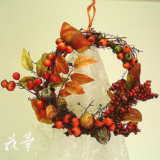 いつも当アトリエをご利用いただくお客さまから、息子さんの新築祝いに贈るリースのオーダーメイドのご注文がありました。ご要望として、楕円形のリース、軽いもの、実物を入れて。軽いもの、ということなので、土台にドライのリースを避け、サンキライの枝でリースを組み、全ての花材はワイヤリング仕立てで制作したのがこちら↓。サイズは約50cmx35cm実物もザクロやサンキライのほかに、ウィローベリーやワイルドベリー、黄色の小花オレンジのガーベラなど盛りだくさん。ワイヤリング仕立てのリースはグルーと比べて、手間がかかりますが、フンワリと立体感がある仕上がり。もちろんフ~シャンはワイヤリング仕立てのほうが好き。常連のお客様、今回は、チョッとオマケ気味かもね。アトリエ花華のコサージュ・ヘッドコサージュ(髪飾り)販売中!成人式、卒業式、入学式など各種パーティーにもご利用いただけます。画像をクリックすると沢山のコサージュのページに飛びますよ!アトリエ花華のHPはこちらをクリックしてネ↑。アートフラワー(上質造花)&プリザーブドフラワーのことなら アトリエ花華で!!!