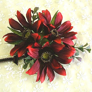 久しぶりに新作のコサージュをホームページにアップいたしました。サンフラワー(ヒマワリ)とハートリーフのコサージュ全3色!バーガンディーイエローオレンジオレンジ最近は黄色意外のヒマワリも沢山みかけますよね~。深みのある色合い3色のミニヒマワリで作ったコサージュにハートの形をしたリーフを添えた、大人可愛いコサージュ!花びらの色のグラデーションがとても魅惑的。お色、サイズともにフォーマルなシーンにもご利用いただけるコサージュです。バックやお帽子につけるのもお勧め!アトリエ花華のコサージュ・ヘッドコサージュ(髪飾り)販売中!成人式、卒業式、入学式など各種パーティーにもご利用いただけます。画像をクリックすると沢山のコサージュのページに飛びますよ!アトリエ花華のHPはこちらをクリックしてネ↑。アートフラワー(上質造花)&プリザーブドフラワーのことなら アトリエ花華で!