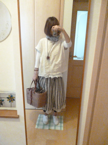 こんにちは~ 梅雨にはいったのに快晴続き。。あー気持ちいい。 この晴れ間のように 心も快晴のなおりんです。ぷぷぷ。。 なんだか いろいろ思い悩むことが続いたこの何か月。。悶々とした日々。。それが 昨日 ほぼ93%←(あいまいな感じだけどWW)解消したのです。。あーもうヨカッタ~よ。。 さてさて ブログお休み中も マイペースに お買いものだけはしてました(笑)やっぱ ストレス発散の手っ取り早い方法は私の場合は お買いもの♪食い気より お買いものなのー お休み中にいろいろ買ってましたが小出しにして ネタが尽きぬように。。(笑) あーー なんだか すっきりしたので更新回数も少しばかり増えそう?? でもって調子に乗りすぎてますよ kayoさん! 今日のコーデ 髪の毛はねてるのは スルーww 無印で買った帽子が思ったよりデカ過ぎた・・虚無僧状態。でも 首筋も日除けばっちり。。ラフィアブレードキャペリン → ☆ ストールは挿し色にグリーンを。 今期 nikoの → ☆ 安くなってる。。 で で 昨日買った スタクリのレザーポーチ → ☆少し 自分で手を加えようかと思っています。。 ゆうきちゃん、ミキちゃん 何買ったかなぁ。。 ****** ちなみに私もスーパーセール 気持ち 走ってみました(笑) 生成り 実物見て一目ぼれ☆ ネイビ ー 2079円 欲しいもの☆ かわいいけど 無理ー^^; この感じ好き☆ あー、今日は娘っこ下校時間4時半。。うれしー(笑)家事しないで ぼけーとしてよっとwwにほんブログ村 ぽちっとな と応援クリックお願いします^^