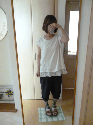 こんにちは あーー。なんか晴れ間が。今日、プールあるなぁ。。娘っこに 日焼け止め塗るの忘れたなーー。。しまった。今年も こんがり少女一直線だわぁ。。 しばらくぶりですww一日 更新しないと 怠け癖がー。子供かってねぇ。ここ数日 忙しくしてました。特に土日は楽しかったなー。。 今日のコーデ sunvalley posm2 裾スカラップタンクグローバルワーク サルエルパンツ*** 土曜日に ナチュラルガーデンフェス に家族で行ってきました~ いろいろ買っちゃいましたww娘っこもー、旦那さんもー(笑) 私は ↑ でごらんのとおり。レザーのリボンブローチとレザーのがまぐちポシェットちゃん^^リボンブローチなんて イロち買い!あー夢の国だったなー。 kayoちゃん thank you!! ビューティフルサンデーさん 今日入荷分もsale!になってる!! hitayaさんのオリジナル新着って これ ↓ にそっくり?ベージュがかわいいなぁ。。 そそ、aha ahaさんのsaleで これポチしました♪ 白ね。 でもって これは 激戦でダメだったよー^^; ではでは 今日もご訪問ありがとうございました^^ にほんブログ村