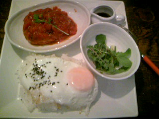 画像ではわかりにくいですが、このハンバーグがトマトベースの味つけでこれまたやわらかくておいしいんです。