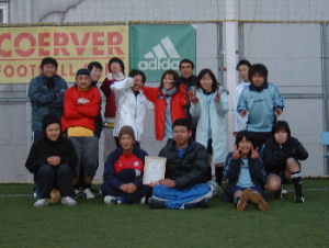 寒さも少し緩みました。公式戦も終わりました。ってなところで、のんびり練習会です。場所:苔谷公園体育館時間:12:30~17:00参加者(top_A):原くん・荒さん(早退)・西山くん・平山くん(遅参・早退)・サワ参加者(komachi):前田さん・大岡さん(早退)・本田さん・橋本さん・竹ちゃん・松ちゃん(遅参)・濱ちゃん(早退)・下向ちゃん(早退)参加者(B_team):安室さん・坪【所感等】久しぶりに、濱&向が参加しました。と言う訳ではないんだけど、今日は基礎をみっちりやりました。・パス交換 蹴った後に一歩出るように(インステップの練習を兼ねて)・浮き球のトラップ インサイド・インステップ・ワンツー・ヘッド・3-2 (ここからtop_Aも合流)・2-2・3-1 即効時のパス交換練習・全員参加のミニゲーム (7対6、6対5、5対5と推移・・・ちなみに、20分でしました。)3-2でゾーンをした後だったので、2-2はイマイチでした。今後する時は、順序を変えた方がいいね。3-1の動きは、まぁまぁの出来じゃないでしょうか。これができると、数的有利な状況で点を取ることができるようになるね。次の練習会では、セットプレーをしようかな。コーナーは必ずあるもんね。いやー、komachiは上手くなったよね。手を抜いていたら、top_Aがやられちゃう位になってきたよ。そのうち、top_Aがおまけになってたりして・・・。あーあ、今日の練習に"渡さん"がいたらなぁ。いい勉強になったろうにねぇ。(komachiにぬかれちゃうよ・・・。)ちなみに・・・。komachiが基礎練をやっている最中は、原&西山でトリックプレーの練習をしてました。次回で完成すれば、ラーメンが・・・がんばれ!ミニゲームは、平山氏が参加したので、結構楽しかったですね。彼がいると、ゲームにメリハリがあっていいなぁ。その後、前田さんのハンドから西山くんがフリーキックを蹴ることに・・・。手を抜いてくれたので、セーブできました。その後の速攻時・・・おいらが飛び出してシュート!見事、西山くんの股間に・・・orz。すみません・・・。そうそう、今までがんばってきた前田さんにキャプテンマークをプレゼントしました。まぁ、グダグダサッカーを楽しんで、今年の活動は終了です。で、打ち上げで飯に行く事になりました。"ラーメン"って意見があったので、行って見たら準備中・・・orz。なので、場所を変えて・・・。場所:餃子の王将(大蔵谷IC店)時間:18:00~19:00参加者:原・西山・前田・本田・橋本・竹村・松岡・サワ腹いっぱいです。もう食えねぇ!って感じですね。話した内容は・・・。忘年会での事。 渡さんが・・・とか、大岡さんが・・・とか。公式戦の事。今後の課題。なんて事かな。さぁて来年についてですが、"(強く)楽しく"やっていきましょう!