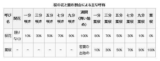 1週間ほど前『葉桜と八重桜』という記事をお贈りしましたが、そもそも葉桜 とは、どういう状態をいうのでしょうか。一説では「桜の花が散り若葉が出始めた頃から新緑で覆われた時期までの桜の木、またはその様」を葉桜と言い、花と葉の割合によって、上表のような呼称があるそうです そして今回は、葉桜ファン のために更なる葉桜特集を組んだ次第です。まずは先週登場した八重桜が今日はどういう状態になっているかご覧頂きたいと思います。4月13日の八重桜(牡丹桜) 4月19日の八重桜(牡丹桜)いかがでしょう ソメイヨシノの葉桜(左)と比べて、華やかな八重桜らしく立派な葉桜ぶりですね 左の桜 は『桜のトンネル2009』で紹介したソメイヨシノで、この写真は同じく4月13日に撮影したものです。上の表でいえば、8~9分葉桜の状態でしょうか。そして4月19日現在どうなっているかといえば、下の写真のように100%葉桜でしょう。 お分かりなるでしょうか。遠くから見れば完全な葉桜でも、近くからじーっと見つめてみれば、まだ2~3輪の桜の花 が健気にも咲いているのです きっと、あなたの街の葉桜にも、探せば最後の一輪が見つかるかもしれませんよ では最後に、大変見辛いかとは思いますが、ちょっと風 がありましたので、八重桜の花びらが散る様子を撮ってみました。葉桜を詠んだ俳句とともにご覧ください。桜吹雪Powered by TubeFire.com葉ざくらや奈良に二日の泊り客 与謝蕪村葉ざくらや人に知られぬ昼あそび 永井荷風葉桜に全くひまな茶店かな 近藤いぬゐ葉桜やいつか川辺に人憩ふ 稲畑汀子