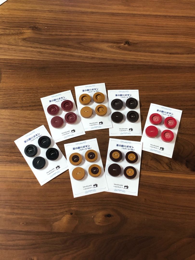 革の飾りボタン 出来上がりました😃 ・ #数量限定 ・ 画像2枚目は#ミニボタン 🔘 とりあえず、1袋のみ💦😅 ・ 週末のイベントに持って行きます✨ ・ ・ ⭐️はじマルシェ⭐️ ~クリスマスマーケット~ ・ 令和元年12月7日㈯ 8日㈰ 時間:11時~16時 場所:立川高島屋S.C. 1階正面入口前