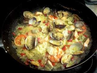 をつけてから、魚介類を乗せて炊きました。沸騰するまでは強火、沸騰したら