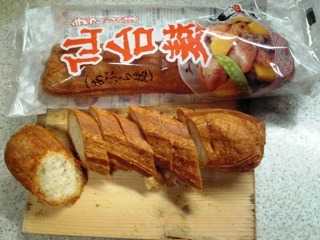 は小麦粉のグルテンを油で揚げた油麩で、バゲットのような揚げパンのような