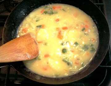 もも加えて、ふたをして弱火で10分煮込みました。火を止めてルーを溶かしま