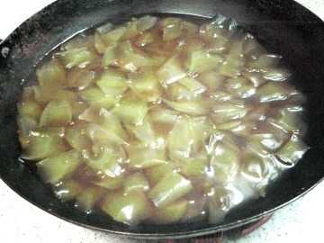 おだしの素各少々で、紙の落としぶたをしながら中火で煮ました。茎わかめは