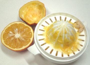 男の離乳食の時期に使っていた搾り器で果汁を取ります。これにしょうゆ少々
