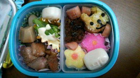今日はチビたちの保育園のお別れ遠足の日でしたお天気は晴れぼんは金曜日の夜からずっと風邪具合がわるく・・・結局、遠足は行けませんでしたがトラは元気に遠足に行きましたそしてトラとお留守番のぼんのためにお弁当も張り切って作りました