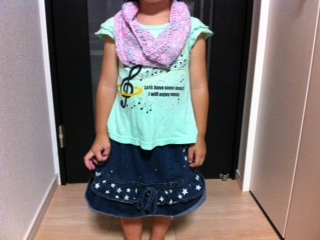 ハピ子にマフラーを、と買った毛糸を早く使いたかったので早速。でも去年、「自分で巻くの!」「ほどけた、取れちゃった!」とめんどくさい事になってたっけ。と思い出して、ほどけないし自分で着脱できるシンプルなスヌードを編む事にしました。完成~ 使用糸:毛糸ZAKKAストアーズ「スキー毛糸 プリモメルト」プリムラ色40g1玉ほぼ使い切り綿×レーヨンのスキー毛糸、MELTが新登場!!ふわふわの肌触りとやさしい色合いに上品なツヤがプ...価格:105円(税込、送料別)使用針:5号輪針(ワイヤー40cmがいいと思う。私はニットプロ付け替え輪針セットの1番短いワイヤー使用)お花ぱっちん留めは4号かぎ針編み図:毛糸ピエロの「マフラー」→210-211-305snの編み図を参考に、子供サイズに変更して糸のゲージで再計算106目作り目して輪編み、1目ゴム編み3段、メリヤス編み42段、1目ゴム編み3段、伏せ止め。(55cmの輪で高さ15cmぐらい)お花は参考編み図なし。輪の作り目で細編み6目、2段目は細編み1目に<鎖3目で立ち上がり長編み1目、鎖3目で引き抜き編み>を編むと6枚の花びらになります。100均のぱっちん留めに縫いつけました。 綿&レーヨンの糸なので秋からでも使える感じ。レーヨン混なのでテロテロした感じもあります。もっと高さを作ればドレープも綺麗かも。大人用でもこの編み図だったら2玉あればできると思います。今セールで1玉100円だから200円でスヌードできちゃうよ~。輪針がなくても、まっすぐ編んでから輪に繋いでとじてもOK。スラブ糸が撚り合わされている中に光沢のある細い糸も入ってるのでちょいキラ☆小さな女の子はピンクとキラキラとフリフリがたいてい好きなようです。ハピ子は糸玉を見つけるなり「わぁ~!この毛糸可愛い!!誰のを作るの??」っていつもより興味津々でした。今日は朝から出掛けて疲れて寝てるのでハピ子の着画もなくて・・・ホント着画ファンの方すいません。マフラーのつもりで2玉買ってあったので丸々1玉残っちゃった。マフラーすると取っちゃうサニ子にも作っておこうかな。かぶるだけだしマフラーよりスヌードの方が首にフィットしすぎないから息苦しさも軽減するかも。さて、次に編みたい物がすでにあるので次、行きます~。
