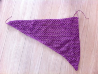 こんなに時間かかる作品じゃないんですけど、全然手がつけられませんでした。<以下、しばらくはワーキングママ系のお話なので、興味ない方は作品画像の所までスルーしてくださいね。>勉強会、本格的に勉強が始まった初日に電車が事故で止まって大騒ぎ。ハピ子は急遽延長保育にして、事故処理に時間がかかるから延長保育でも間に合わないようだったので勉強会主催の会社の方に車で迎えに来てもらったりして・・・(ありがたい!こんな事してくれる会社は普通ないですよね)ハピ子を幼稚園に迎えに行き、帰宅したらもう夕ご飯の時間。「お腹空いた~」攻撃に合って、そのまま超特急で手抜き夕ご飯を作って提供、食べてる間にお風呂の準備して・・・くたくた。でも、働いたらこれが続くわけです。ものすごく勉強になりました。今の私には、正社員は無理だという事がわかっただけでも貴重な経験になりました。勉強会には正社員になる人ばかりがいるのですが、やはり主婦からいきなり、という人よりもパートしてたけど年金とか税金(扶養)とか色々考えて、っていうステップアップの人が多いんです。主婦からいきなりっていう人は、独身またはすっかり子供に手がかからなくなった方が多いです。なので、私もいきなり正社員はいくら会社側が小さい子を持つママに寛容だとしても体力的にムリだな~と。1日8時間働くなら週3~4ぐらいのパートから始めないと全部両立ってできないです。要領がわかったらフルタイムも可能かもしれないけど。勉強会が休みの日に合わせて、希望する職種(勉強会の内容とは全く違う職種なんですが)の職場見学の予約を入れたりして、ほとんど休みのない状態。本日土曜も本当は勉強会があったけど、旦那ちゃんがあまり良い顔しないので(と正直に理由を言って)欠席しました。代わりに宿題が山のように出たので今日、明日でこなさなければならないんですけど。見学した所は思っていたよりすごく良くて、家からわりと近いし、もう履歴書出しちゃいたいぐらいなんですけど・・・まだもう1件気になる職場があるので、そこを見学してからどっちにするか決めようと思います。でも、就職が決定してもすぐには働かない予定です。どこに行っても研修があるので、私1人のためにわざわざ研修をするのは申し訳ないから他の新卒者と一緒に4月入職で一緒に研修を受けたいなと。それまでに勉強し直して、せめて知識は新卒者と同レベルにしないと使い物になりません。できれば技術的な研修も(調べたら通える場所で2月に実施予定)受けておこうという計画です。まぁ人手不足の職種なので、見学した所では内々定をいただけたようなもの(と私は解釈している)ですが、内定が出た時点で今行ってる勉強会は辞退となります。できれば全部勉強したい所ですが、一応日当も昼食も出るので、就職しないとわかってるのに通うのは失礼ですからね。恩を仇で返すような事もしたくないし。他に就職先が決まれば勉強会主催の会社には就職しません、という旨は初めからずっと何度も伝えており、了解の上で勉強会に参加させてもらってるので、辞退しても「は?」とはならないはずです。前置きが長くなりましたが。三角ショール。 直角三角形を2つ繋げて作る、というイメージです。使用糸:もっふぁんコットンcol.106を4玉【セール!!!】もっふぁんコットン価格:299円(税込、送料別)使用針:かぎ針6号編み図:「着回し自在なニットのふだん着」よりショール。72段の指定ですが、糸をめいいっぱい使い切ろうと思って74段にしてあります。[2011年春夏] (文化出版局)リネン、コットンで編む 着回し自在なニットのふだん着[ハマナカ...価格:1,365円(税込、送料別)肩にかけるとこんな感じです。 相変わらずスチームかけてないので先っぽがくるん、としてますが。あとでかけます。次に編もうと何か決めてたわけじゃないので、とりあえず編むのは一休みで勉強会の宿題をしようと思います。子供達がお昼寝してる間だけでも・・・