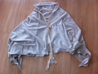 やっぱり直線だし断ち切りだし簡単なデザインだから挫折しないうちに出来上がりますね、こちら。ママ用カーデ 昨日のハピ子用とオソロです。これハピ子用 この先、着画ありますのでPC壊れたくない方はスルーでお願いします。 顔が写らないように頑張って何度も撮ってたら、あっつ~!今日は暑い日だったので汗だくになっちゃいました。袖の三角になってる所も、魔女っぽくて意外と素敵。超簡単な作りなのに便利かも。私、ロックミシンは持ってないので、これは普通の家庭用ミシンで縫いました。ニット用のミシン針にしたぐらいで、糸も普通の糸。ニット用ではありません。デザイン的に、伸ばして着たりしそうにないので大丈夫かな~と。使用針↓71102オルガン★ニットミシン針#11価格:173円(税込、送料別)使用糸(ちょっと違うかも)↓70104ポリエステルミシン糸大巻ベージュ価格:210円(税込、送料別)生成りって名前で売ってた気がするからこれじゃないかも?私が使ってる手芸ナカムラさんで買った工業用ミシン糸の生成り色は、本当~に万能です。たいていの物は生成り糸で縫っちゃいます。意外とミシン目が目立たないの。自宅用なので、いちいち生地の色に合わせた糸を揃えてたら大変な事になっちゃうから~。母のソーインググッズとか見ると、もんのっすごい事になってますから。私みたいなズボラが大量のミシン糸&ボビンをきちんと管理できるとは思えないです。はい。絶対同じ色のボビンが見つからなくて、縫う度にボビンに巻いて、ボビンだらけになるような気がする!間違いない!それにしても手芸ナカムラさんって何でも安いよね~。足りない物買いたい時、まずはナカムラさんで探しちゃいます。買いたい物を溜めて溜めて、一気に買う。と思ってると売り切れになっちゃったりする。再入荷を待ってるうちにポイント5倍とかやってて、それが終わってから再入荷したりする。(ナカムラあるある)生地、ノーション類はハピ子のカーデと全く同じです。こちらの生地のページに本の画像が載ってます。【作るのかんたん すぐ着られる! キャミソール&キャミワンピ掲載商品・24ページ】ヨーロッパ...価格:1,470円(税込、送料別)この生地だと輪を切り開いても136cmだからママ用を作るにはちょっと足りないのね。って事は、1.5m買わなくちゃいけないのね。4500円かかるのかぁ~。1000円で親子両方作れて良かった。