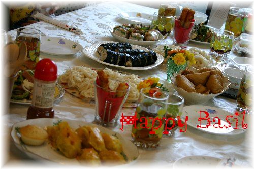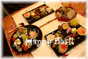 ずっと更新しようと思いつつ、毎日慌しく育児や家事に追われて、気づけばもう年が明けてしまいました。。。もう秋前から更新してなかったんですね冬前にこれからはちゃんと更新するぞって意気込んでみたものの、帰省やら怪我などでバタバタしてましたというわけで今年こそちゃんとマメに更新しようと元旦に決めたのでもう1月も終わりそうですがよろしくお願いします まず、upして置きたかったものは去年のものでもupしておきたいのでお誕生日会ネタから。。。10月生まれの娘のお誕生日会はパパのお仕事の都合で、関西への帰省とかぶったので前倒しですることになったので義理の両親をお招きしてうちでお誕生日会をしました天ぷらやお寿司、裏白椎茸、お吸い物、小鉢といつもの煮しめです♪お寿司はめでたいので鯛型に↓そして数日前から、もち米から炊いて搗き固めておいた。。。手書き名前を入れた一生(一升)餅↓一応Happy 1st Birthdayと書きました。。。が、天然色素なので薄くなってしまいましたそしてちゃんとお楽しみの職業選びもしました みんなが予想しなかったけど望んでいたお財布に向かってまっしぐらでしたそして更に大イベントの一生餅担ぎ地方によって踏んだり(餅を)とか、色々あるようですが、義母に聞いたところによると、早く家を出て行かないようにと衝いて転ばすそうですが、それ以前に立てなくてしかも重くて動けないのでギャン泣きでひっくり返ったりカエルのようにペタンとなったりで、家中爆笑の渦でしたかなり爆笑したシーンがビデオに納められていい記念になりましたその2スイーツ編に続く。。。