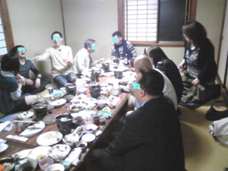 金曜日課の送別会が行われたのでした・・・・・例の離婚時。 突然の引越しを手伝ってくれた課長・・・・そして、物資担当の青年。そしてそして、パソコンではずいぶんお世話になった主任。揃いも揃って、個人的にお世話になった方が3人も一度に転属ですごっつー貧乏ですが、送別会には出ないワケには行きません雷ゴロゴロ・・・・雨ザァザァ・・・・風ビュービュー・・・ の中、参加して参りました普段見せることの無い表情が見れるのも楽しいものですもうすぐお別れする人たち・・・・しっかりと感謝の気持ちを伝えたかった。しっかりと、見送りたかった。会費が6000円と、かなり高額だったけど食費を削ってみましたお嬢たちよ・・・・しばらくは(ずっとだが)貧しいが我慢しておくれなんでも『ほろほろ鶏のシャブシャブ』とかやわらかくて美味しかったですよ4月の歓迎会からは出席できないけど、思いっきり楽しんだような気がする料理はまぁまぁビールほんのちょっぴり頂いてほろ酔い気分で帰りました とさ