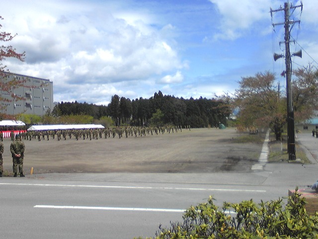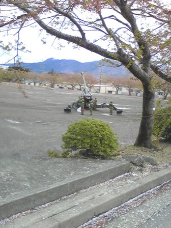 お誘いを受けたので、行ってまいりましたなんたって、朝の7時半までに駐車場に入らないと「止められないぞ~~」と。頑張りましたともシャトルバスなんてイヤだもの・・・・・・去年も一昨年も、雨知り合いの出店でランチを買い込み、食べるだけで終了~そんな『駐屯地創立記念行事』でしたが、今年はなんと、晴天嬉しいじゃないですかぁ店をめぐり、ランチを決める作業から始まるんですねそして、式典。 そんなの関係ねぇーって事でおしゃべりに夢中でした次がパレード新隊員の行進がヘタクソで、笑えたんです可愛いですねそれが数年たてば、一般自衛官のようにキチッと揃った行進が出来るなんて・・・凄いで、自衛隊体操・・・・・・・ミョ~な動きに笑いしか出てこず・・・・・そんな合間に、知り合いのワックさんにお願いして記念撮影こんなことしてたなんて、ナイショですよ遊んでるうちに、『模擬戦』の時間初めての模擬戦見学に、ちょっとソワソワこの戦車が動きだし~~~~おーーーーっ、ヘリもやってきた乗ってる自衛官たちがロープを使って降りてくるようだが・・・・・・こんなになってて、見えません口の中。 耳・・・・・・髪の毛・・・・砂だらけ。 目は開けられないし・・・・・・適当に携帯を構えてパチリッ 試乗が出来たようですが、以前乗せてもらったので、今回はパスしてランチタイムですここでは美味しい『もつ煮』と『チョコバナナ』を購入楽しい先任の居る、ここで『お好み焼』きを買いランチも無事終了~とにかく天気が良くて初めての模擬戦にも興奮し1中隊からお茶2中隊からフライドポテトを頂きあ~~、楽しい一日になりました桜もハラハラと散ってる最中で、ギリギリなんとなく楽しめたかなかなりお疲れモードにはなったけど楽しい一日になりましたUma さん 逢えなくて残念だったね~~~~( ̄▽ ̄; 個人的にすんません「板妻駐屯地」&「駒門駐屯地」のみなさん、ありがとうございました