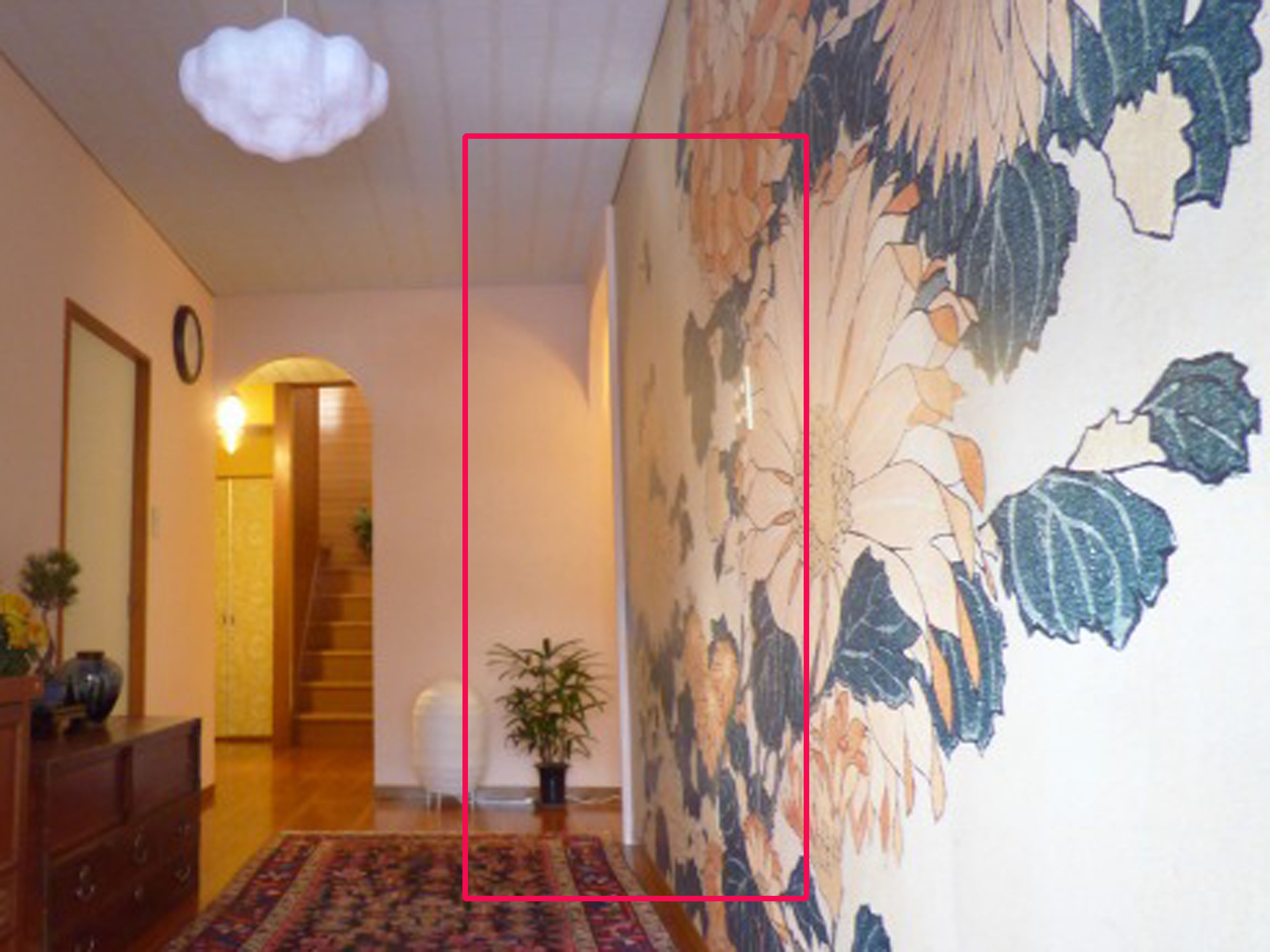 ***************************************************壁紙屋本舗さんのリフォーム選手権2ndステージに進出中です!↑2ndステージに進出の他4組の方々のブログも読めます!↑画像をクリックしていただくと、ブログを転記したページに行けます。 「いいね」や「応援メッセージ」ありがとうございます。励みになっています。 ***************************************************今日もブログをみてくださってありがとうございます今日は大晦日。昨日、カスタム壁紙を貼り終わることができたので今日は床の養生シートを剥がして、掃除をして玄関にお花を生けて、新年を迎えようと思っています。でも今こうしてブログを書いている私は体ガタガタです。掃除する気力なーーい( ̄Д ̄つかれたーって思っていたら父がお風呂掃除をやってくれるって(笑)ヨッシャ~! 少しやる気出た (・m・*)なんでこんなに疲れているか?カスタム壁紙を貼るのがほんっとーーーーーーーーーに大変だったんです。カスタム壁紙はこの2面の壁に貼ってこうなるイメージです。多分、これは2日に分けてやる作業だったと思うのですが私は昨日これを一気にやってしまったので疲れ方半端ないです()´д`()ゲッソリ・・・その大変だった昨日の作業です。4.廊下の竹の壁紙から貼りました。自然 パターン 模様の壁紙輸入 カスタム壁紙 PHOTOWALL / Bamboo Texture (e25470)貼ってはがせるフリース壁紙(不織布)【海外取り寄せのため1カ月程度でお届け】【代引き不可】価格:108円(税込、送料別) (2017/12/31時点)サンダーをかけて白い壁紙を下地にしたこの壁です。引き戸があるので、なんだか面倒なことになりそう(-ε-;)カスタム壁紙は、壁紙に糊がついていないので壁に直接 糊を塗って貼ります。【日本テレビ系「スッキリ!!」2/6放送分で紹介!】強力タイプカベ紙用のり1600g No.775 アサヒペン価格:1491円(税込、送料別) (2018/1/2時点)いつもの壁紙を貼る道具一式の他に 糊を塗るためのローラーも用意します。糊を拭き取るスポンジは必須ですよ。壁紙と壁紙のジョイント部分にどうしてもが糊が付いてしまうので付いた糊を手早く拭き取らないと、糊の跡が残ってしまいます。スポンジがあるとサッと拭き取れます。壁紙施工道具スポンジ【あす楽対応】価格:103円(税込、送料別) (2017/12/31時点)これは本当に使いやすいのでぜひ使ってもらいたい!布巾でいいじゃないかと思うかもしれませんが片手でギュッと絞れるし、拭き取りやすいので作業効率UPです。あと、ロールでは届かない端に糊を塗るときこういう刷毛もあると便利でした。カスタム壁紙は、1ロールに繋がって全部プリントされています。これをハサミで切って貼ります。1枚目を貼りました!カスタム壁紙は、左から貼り始めるのが本当ですが左は廊下の奥であまり人目につかないところです。いつも目に入る右側から貼り始めました。2枚目も無事貼れました。問題はここからです。3枚目からが引き戸に掛かってきます。建具枠の上で一旦カット。見えにくいですが上に貼った壁紙の端と下に貼る壁紙はまっすぐになるように5円玉を垂らして合わせています。もちろん、隣と柄も合うように。おお~思ったより上手く行きました♪こうしてここに引き戸があることがわからないようにしたかったのです\(^o^)/ここからは貼り終わるまでずっとこうして面倒な貼り方がつづきました。この辺りが一番大変だったところです(~Д~;) フゥエエエとても苦労したけど終わった~!!!!BeforeAfter騙し絵効果でともても面白い~♪廊下が和モダンな不思議空間になりました(*´꒳`*)Afterアーチからチラッと見てみた(*´∨`*)イイ感じ~♪メージ通りの眺めになりました!でも実は問題も発生していて(笑)上の写真でお気づきでしょうか?建具枠のところまで来るはずだった壁紙がなんとも中途半端なところで終わってしまいました(笑)すき間が・・・(笑)私の採寸ミスですね(笑)廊下の奥で、あまり目立たない場所なので気にしないことにしました。右側から貼り始めて良かった~それと天井との間にどんどんすき間ができてきて(笑)多分、貼った私しか気づかないと思うんですがあとで壁紙の切れ端で胡麻化そうと思っています。縦横とも1㎝ほど大きめに発注したのに貼り方が悪くてこんなことになってしまいました(>_<)北斎のカスタム壁紙を貼るときは気を付けようと思います。引き戸があってなかなか大変な作業で・・・ここを終わった時点で体力も気力も使い果たした感じでしたがこの日にカスタム壁紙を貼り終わってしまわないと翌日の大晦日は作業できないので新年を気持ちよく迎えられるようにつづけてベニヤ板を貼り、パテ埋めしたこの壁にカスタム壁紙を貼る作業に進みました。ここはメインとなる北斎の壁紙です。アート 絵画 自然の壁紙葛飾北斎 菊に虻輸入 カスタム壁紙 PHOTOWALL / Hokusai, Katsushika - Chrysanthemums (e10382)貼ってはがせるフリース壁紙(不織布)【海外取り寄せのため1カ月程度でお届け】【代引き不可】価格:108円(税込、送料別) (2017/12/31時点)ここは引き戸も無い
