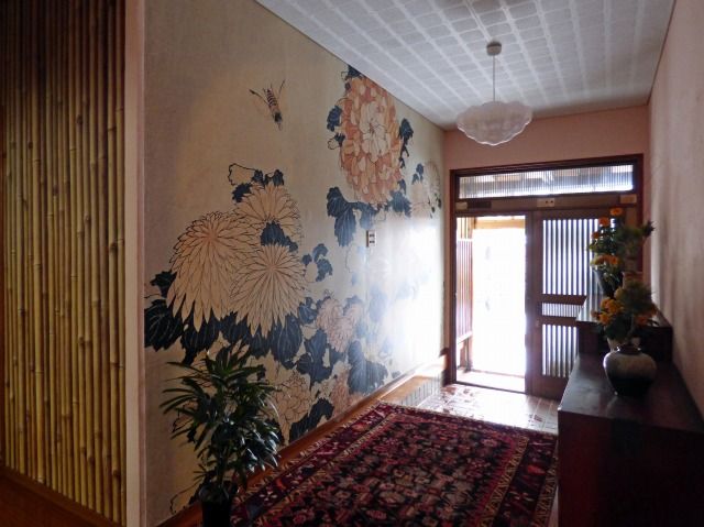 ***************************************************壁紙屋本舗さんのリフォーム選手権2ndステージに進出中です!↑2ndステージに進出の他4組の方々のブログも読めます!↑画像をクリックしていただくと、ブログを転記したページに行けます。 「いいね」や「応援メッセージ」ありがとうございます。励みになっています。 ***************************************************今日もブログをみてくださってありがとうございますBefore&After その2 へ行く前に・・・一緒に2ndステージを頑張ってきたみなさん本当にお疲れさまでした!日々更新されるみなさんのブログが楽しみでした!DIYやリメイクセンスにいつも刺激をいただいていました。ありがとうございます(*・_・*)ゞ今日はまだみなさんのブログを見に行く余裕がないのでこのBefore&Afterを更新したら見に行かせていただきます。あーー早く見たい!そして、応援コメントやいいね☆をしてくださったみなさま本当にありがとうございました。いつも励まされていました。応援のおかげで最後までやり切ることができました。そしてそしてサポートスタッフのみなさま。いつも支えてくださってありがとうございました。みなさん いつもあたたかな言葉をかけてくださって安心してリフォームに取り組めました。終わってしまうのがなんだか寂しいです(;n;)ナキソウ今回も友人や家族にも支えられた選手権でした。差し入れのスイーツを届けてくれた友達にも感謝。疲れたときの甘い物は最高だったよ。そして「お手伝いすることない?」と来てくれたけど女子会をして笑い転げて帰っていった友達(笑)いつも気にかけてくれてありがとう。最後に家族。完成した玄関や廊下をとても喜んでくれた家族。「大変な時は手伝うから言えよ」と作業を助けてくれた父。玄関の完成がよほどうれしかったのか「私、お客さんになってみる~」とピンポーーン♪を鳴らして玄関から入ってみた母(笑)陰ながら地味な作業を手伝ってくれた妹。両面テープをはがしてくれたり、食事の支度を代わってくれたり助かった。いつもはDIYに無関心なのにアーチ壁が出来上がって「テーマパークの入り口みたーーい♪」と喜んでくれた姪っ子。「この照明作ったの?すごっ!」とかも嬉しかった(笑)LINEでリフォームの様子を送るたびにいろんな言葉でほめてくれた甥っ子。お正月に帰省したときカスタム壁紙を貼った壁を見て「うぉーーーーーーーーー!!!」と玄関で驚いていたのも思い出(笑)大変だったけど、家族みんなが喜んでくれて疲れが吹っ飛んだ。:.゚ヽ(´∀`。)ノ゚.:。 ゜みんなありがとう。ということでAfter写真を見てください。西日があたる玄関。夕方だんだん薄暗くなっていく玄関。ピンクの漆喰壁がいい表情になっていきます。リフォームが完成した玄関と廊下は夜の顔も好きになりました。甥っ子が買って来てくれたIKEAのフロアランプ。これとても活躍してくれています。夜の廊下はこの灯りだけの時が多くなりました。玄関、廊下 全体が明るくなったのでこの灯りだけで充分だったりします。間接照明がいい影を作ってくれます。雲もぽっかり浮かんで見えます。廊下の手作りシェードも紙なのでフロアランプと合います。廊下奥からのこの感じも好きなんです。「黄金色の稲穂」これも思い切った色使いに挑戦でした。リフォーム選手権のお陰でいろんなチャレンジができました。ドアを引き戸に作り変えたり、目隠し壁の収納を作ったりこうなれば便利だなを実現できました。感謝!感謝!です。最後のインテリアコーディネートに困っていたところ・・・この”おばあちゃんの古い箪笥”にも助けられました。物置部屋に放置されていた箪笥。これも蘇った!お花も似合う玄関になりました。北斎の「菊に虻」にちなんで菊を生けています。これからも季節のお花を生けよう。完成して本当に嬉しい。西の方位と相性のいいピンクの玄関。西は花との相性もいい。ここから良い気が入ってきて家中をめぐってほしい(o´▽`o)私のイメージした「和の玄関」完成して夢のようです。ここにずっと居たくなります。リフォーム選手権でのセルフリフォームはこれで終わりとなります。しかし、わが家のリフォームはまだまだ続いて行きます。もうすでに姪っ子部屋のプランを練らないとって思っているところです。その後は、物置部屋になっている和室を両親の寝室へとリフォーム予定です。(今週末のお休みは、さすがに温泉に行きたいと思っていますが)古い家なので、これからもどんどんリフォームを続けていって自分の手で家族の笑顔が増える家にしていきたいと思っています(。´∀`)ノ゙*+:。リフォーム選手権は1月24日で終了ですがブログ、facebookへのコメントなどの応援は 2018年1月29(月)23:59まで有効となるそうです。いいねと思ったらこちらに 壁紙屋本舗さんのnikkoriのページ よろしくお願いします(*_ _)♥最後まで見てくださってありがとうございました。 励みにしています。ポチっとしてくださればありがたいです。にほ