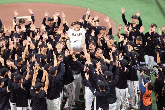 おはようございます。連休最終日も曇天の17度予想。朝晩の寒暖差にご留意で体調管理にご自愛ください。《巨人》チョーさん・岡本胴上げ 1時から始まったファンフェスタいつものように,グラウンド一杯にファンが降りて,選手と交流コンコースもゲーム大会などドーム全体で楽しんだ1日。サインボールの投げ入れでは岡本が1人場内一周『岡本コール』が全体から起き手を挙げて感謝を… もう1人,アメリカに挑戦の女子チーム創設メンバー島野愛友利アメリカ女子野球ドラフトでロサンゼルスから指名を受け目指してきたスタートラインに立てる事が嬉しい今後は女子チームを宜しくと年内で退団し4月に渡米。8月の開幕に備える事になるクライマックスはチョーさんの引退セレモニー由伸・辰徳元監督と鈴木誠也がVTRコメント花束贈呈にも由伸と村田修一サプライズで菅野阿部監督は珍しく号泣花束を渡しながらしばし2人だけの会話坂本も目は真っ赤…グラウンドを1周してファンに挨拶をしながらナインが待つホーム付近で人柄がでる1コマ胴上げを一旦制して和真を先に呼び込んで胴上げそしてドームの空中に待った今の僕の夢は来年チームが日本一になる事です。監督宜しくお願いしますと最後まで『チョーさん』でした