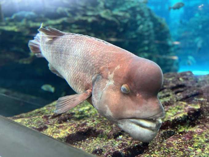 予報を上回り22.4度。天候急変にもご注意の上ご油断なくお過ごしください。 上越市立水族館・うみがたり~~朝のご挨拶ショット悠然と迫力の泳ぎは…特徴のある魚体のコブダイ水族館としては珍しい個体岩場などで隠れる生態の魚も大水槽でゆったりと