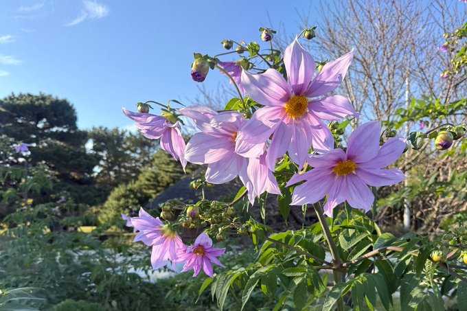 予報通りに15度。1日の寒暖差に十二分にご注意で暖かくしてお過ごしください ひたち海浜公園~~園内では,コキアの刈り取りが終わり現在乾燥中…みはらしの丘の養生も終わって来春に向けて,ネモフィラの種まきが始まったそうです来春の準備の一方でみはらしエリア・古民家のそばで皇帝ダリアが満開青空をバックにピンクの花が