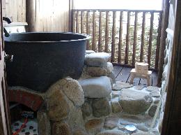 はじめて五右衛門風呂を見ました。向こうに加計呂麻島(かけろまじま)が見えました。水道がレトロ。