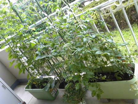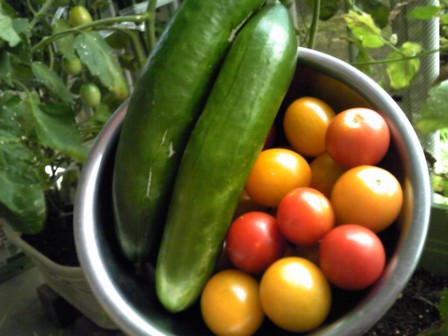 とんと御無沙汰しておりました長男が小学校に上がってからというものなんだかあわただしい毎日で中々PCに向かう時間がとれなくて・・・久々に平日で、朝も少しゆっくりできるお休みなのでブログをアップしてみようかと。最近、ちょっと楽しんでいるのが「ベランダ菜園」暖かくなってきてどんどん野菜も成長し今朝の様子はこんな感じ。プチトマトは2種赤いのと、黄色いもの。赤いほうは少しづつ収穫もでき子供達も「収穫するよ~」と楽しそうに摘んでいます。きゅうりベランダ用のこぶりなもので10センチくらいで収穫です。今日あたりこれも頂けそう♪で、ゴーヤ結構大きくなってきたので昨日はネットをつけたしてベランダの屋根部分につるを誘引できるようにセッティングするのに苦労しました。どんな「緑のカーテン」に成長するのかとっても楽しみあと、写真を撮り忘れましたが長男君が一つ上の2年生に頂いた朝顔の種も立派に成長して花を咲かせています。狭いベランダですが毎朝一番に眺めて楽しんでいる私。もちろん子どものためもありますが一番楽しんでるのは私のようですあ~、庭付きのおうちだったらな~、なんて夢見ながら今日も清々しい気分にさせてもらいました