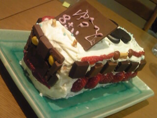 クリスマスが終わりサンタもひと段落。みなさん、どんなクリスマスを過ごされたのでしょうか?我が家は23日が長男君の誕生日。今年で8歳になりました。当日、日中は次男くんの保育園のお友達との集まりに参加していたのですが夕方帰宅してからケーキを作ってお祝いしました。今年は長男が自分でケーキをデコレーションしたい、とのことで大好きな電車の形のケーキに挑戦。25日に旦那方の祖父母が長男君のお祝いに我が家に来る予定もあったのでまずは誕生日当日の23日に練習も兼ねて一回作りその後25日に本番ね、と長男が言うので2回も電車ケーキを作りました。1回目はこんな感じ↓これ、京葉線なんだそうです。スポンジは前の晩に私がパウンドケーキの型で焼いておいたものをデコレーション。1回目はスポンジを2つにして真ん中にイチゴとクリームをはさんだのですが、もうちょっとイチゴを挟み込んだ方がおいしい、とのことで2回目は3つに切って2層にイチゴを挟みました。あと、窓にチョコレートを使ったらかなり胃にヘビーだったので2回目はチョコではなくてビスケットとかプリッツを主に使おう、とのこと。で、2回目はこんな感じ↓2回目はスポンジ作りから長男君もトライ。まあ、言われたとおりに材料を入れてハンドミキサーで混ぜるだけの物なんですけどね。それでも卵がメレンゲ状に膨らんでくるのを体験して「うわ~、面白い!」とのこと。そしてデコレーションは生クリームを塗った上にお菓子をくっつけるのみではありますが細部に本人なりにこだわっていて側面にはプリッツでちゃんとドアを付け行き先の表示される部分も作り、天井部分には空調の機械?もつけたそう。後ろ側には連結用のドアもあり、で結構真剣に作っていました。お味はまずまず。自分のデコレーションしたケーキを皆に食べてもらえて長男君もちょっと自慢げでした。しかし、もう8歳。なんだか早いですね~。まだまだ幼い一面もありますが確実にお兄ちゃんになってきています。誕生日プレゼントには本人のリクエストでバスケットボールと簡易のゴールを購入ゴールはこれまだゴールは実家にあって組み立ててないのですが使えるのかどうか・・・・プレゼントは事前に購入してありすでにボールも本人に渡してあったので当日は何の準備もなかったのですがケーキを出す時になって「さ、じゃあ皆、プレゼントを用意して~」と長男君。「え~!!」と次男くんは急に焦って「じゃあさ、ちょっと待っててくれる?」と工作をはじめさささっと多分10分くらい?でこちらを作成ツリーだそうです。そして旦那からはこんなものを。当然本人は大喜び。カシオペアのペンケースとえんぴつそれから新幹線の消しゴムだとか。・・・まったく。「もうプレゼントはあげてるんだからいいのに~」と私が苦い顔で言うと「だって催促されたらね~・・・なんとなく」と旦那。意外とちゃっかりものの長男君なのでした。