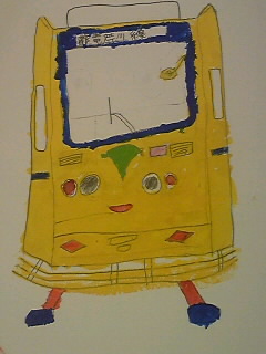 電車好きな長男くん。先日お出かけした際にも駅にはられたポスターを見て「あ、これやんなくっちゃ」と言ってはいたのですが。都電荒川線マスコットキャラクターイラストコンテストで、今日学校から帰った長男くん。いつものようにランドセルを放り投げマイペース。そしていきなり「あ、絵かかなくっちゃ」と一人机に向かって何やら書きだしました。なんだろう?とのぞいてみると雑誌の都電の写真が出ているページを広げ何やら一生懸命紙に書いております。「何かいてんの?」「キャラクターの絵。明日までだから」「明日までって・・・で、それどうすんの?」「わかんない。ママ調べて」「わかんないって・・・はいはい。調べるのね。」とパソコンで調べてみると確かに明日締め切り。しかも明日必着で郵送です(汗)「明日までに郵便で着かないといけないみたいだけど。 間に合うかなあ?ま、とにかく急がないと。」と私。「わかってるよ」と別に急いでいる様子もなく黙々と絵を描いています。「できた!後は絵の具で色をつけたいんだけど」と鉛筆書きの絵が描きあがったようですが見せに来たのはレポート用紙の裏を使って描いた絵(苦笑)コンテストに出そうというのにレポート用紙の裏に描くとは・・・ま、指定されてるA4用紙ではありますが。「これじゃ、ちょっと絵の具は無理だよ。 こっちのスケッチブックの紙を使ったら?」「わかった。じゃあA4に切って」とのことでB4サイズの画用紙をA4サイズにカットしてあげると特に焦る様子もなく再度同じような絵を描きながら「お、こっちの方がよく描けてるかも♪」と独り言?を言いながら黙々と机に向かいます。(勉強もそれくらい集中してくれたら身につくだろうね~)と心でつぶやく私。途中、帰宅したパパに「ねえ、ここは何色がいいかな~?」なんて相談しながら帰宅してから2時間くらい集中して頑張りました。出来上がったのはこちら↓う~ん。あんまり捻りがありません。都電そのまま(爆)子供らしくていいんだけどね。それにしてもコンテストに絵を出してみたいなんて言うのは今回が初めての事。「なんで急にコンテストに出してみたくなったの?」と聞いてみると「だって、1位になったら俺の絵がいろんなとこに使われるんだよ。すごいじゃん!そのことがわかったらさ。あ~、1位になるといいな~」と本人すっかりその気。「そうだね~。1位になるといいね~」と返しつつ絶対無理だろうな~、と思い苦笑いで目を合わせる父と母。「ねえ、1位になったら何かもらえるの?」「賞状と30万円。あ、でも子供の場合はお金じゃなくて品物になるみたいね」「え~!!じゃあさ、もしかしてNゲージた~っくさんとか~??」「・・・多分それはないんじゃないかな~」と返しても夢はどんどんふくらんで、ニコニコ笑顔の長男くん。きっと頭の中には大好きな電車のいろんなグッズが思い浮かんでいたのでしょう。出来上がった作品?は急いで封筒に入れてパパがわざわざ大きな郵便局に持参し投かんしてくれました。多分明日までには着くでしょう、と。でもなんで前日にとりかかるのか・・・やる気があるようなないような。そういえば夏休みの宿題の読書感想文も始業式の前日の夜に眠い目をこすりこすり仕上げていたな~。典型的な一夜漬けタイプ。ま、それでも長男くんの小さなチャレンジですから。参加賞が頂けたらいいな~♪