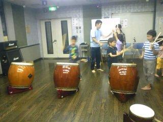 昨日の祝日は近所で行われた太鼓教室に参加してきました。先生はでん舎のでんちゃん。でん舎HP昨日は大人と子供合わせて20名の参加者がありました。以前こちらでも書いたのですが次男くんは大の太鼓好き。昨日もとっても楽しみに出かけたのですが嬉しい気持が大きすぎてテンションあがりすぎてしまい浮足立ってしまうような感じで…時々暴走したり、皆の輪に入れなかったり。親としてはせっかくの機会なのに…という思いもありますがこればっかりは仕方ないですね。そんな様子でも「よし」と受け入れてくれる先生なのでとってもありがたい。休憩中の様子はこんな感じ♪この手前にある小さな平太鼓は我が家から持ち込みしたもの。自分の太鼓、と言うだけで次男くんのテンションも上がります。教室の中では、あまり先生の指示に沿って動けない次男もここぞとばかり休憩中に太鼓を叩いておりました(苦笑)さすがに私はお腹が大きくて今回は参加せずに見学にさせて頂いたのですが基本、大人も一緒に参加できるというスタイルが場を盛り上げてとっても良いように思いました。見てると意外と大人の方が真剣(笑)つられて子供も一生懸命に、という感じなんです♪ 90分間はあっという間で長男君は最後に渡されたアンケートに「もうちょっと時間が長ければいい」と書いたくらい楽しかった様子。後半、参加した子の兄弟で1歳前の赤ちゃんのお世話をしていたのですが小さな赤ちゃんもあの大音量の太鼓の音は嫌がらずににこにこととっても楽しそうで。最後はスヤスヤと夢の中。きっと心地いい音なんですよね。またしばらくの間次男くんの太鼓熱が上昇しそうな予感です。次回は11月23日今からまたとっても楽しみです♪(私は産後で参加は微妙ですけどね…)