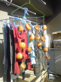 先日、私の実家に帰った際に庭になっていた柿を「すきなだけもいで行け~」と言われ枝ごと落としてもらった柿の実を息子らが一生懸命もいできました。かなりの量があり半分は旦那の実家に持っていきたい子供たち。でもいくらなんでもお二人で食せる量ではないしちょっと少なめにして、と声をかけていると横から「そしたらさ、その柿、干し柿にしてからばあばにあげたら」と旦那。「そっか~。いいね~」と息子らも大喜び。って、干し柿なんか作った事ないんですけど。「なんでも干し柿にすると栄養が4倍くらいになる、ってどこかで読んだぞ。」とまたしても旦那。で、すっかりそういうことになりたくさんの柿が我が家に残ったのです。少しは家族で食べたのですがあまり柿好きではない子供たちとおっぱいをあげていてあまり果物は多くとれない(体を冷やしますので)わたしなので結局かなり余ってしまい本日、腐ってしまう前になんとかせねば・・・と干し柿を作ってみることに。ネットで調べてみると作り方も少しづつ違うんですね~。で、いずれにしても干せばいいのね、ということで余っていた柿の皮をすべて向いてタコ糸で適当に縛ってハンガーにつるしてベランダへ。でも、我が家のベランダ、洗濯ものですごいことになっているので洗濯ものにまぎれて干し柿、な感じです↓渋柿ではないしうまくできるのかは微妙ですがちょっと楽しみ♪でも柿の皮をむきながらふと気付いたことが。それは・・・いつも面倒なことを思いつくのは旦那。そして、ついついそれに乗っかってしまって面倒なことを実行するのは私なんだよな~、ということ。結婚式の時からそうだった。なんだかいろいろ思いついてあれもこれも、と面白そうなことをいいだす旦那とそれをなぜかせっせと実行する私。しかも、結構私も楽しんでいる(苦笑)普通、言いだしっぺがやるんでなかろうか・・となんとなくいえいえ、かなり納得できない気持ちとなり「なんだかな~」と皮をむく私でした。で、同時に旦那の実家からはたくさんのリンゴをいただいてしまって。大きなものを10個ほど。そんなには・・・と返す私に「これでジャムにして~」と次男くん。ほんとなら本人にやらせたいところですがなかなか時間がとれず。今日ついでに私が作ってしまいました。大きなリンゴ6個でけっこう出来ました。これくらい↓皮もすこし色付けに入れて見ましたがあんまりピンクにはならなくて使ったお砂糖が茶色い洗双糖だったのでちょっとあめ色のジャムとなりました。明日は次男くんの七五三と娘のお宮参りを兼ねて両方の親が集まるのでお土産に持参しようかな。頂き物がいろいろに変身した一日でした♪